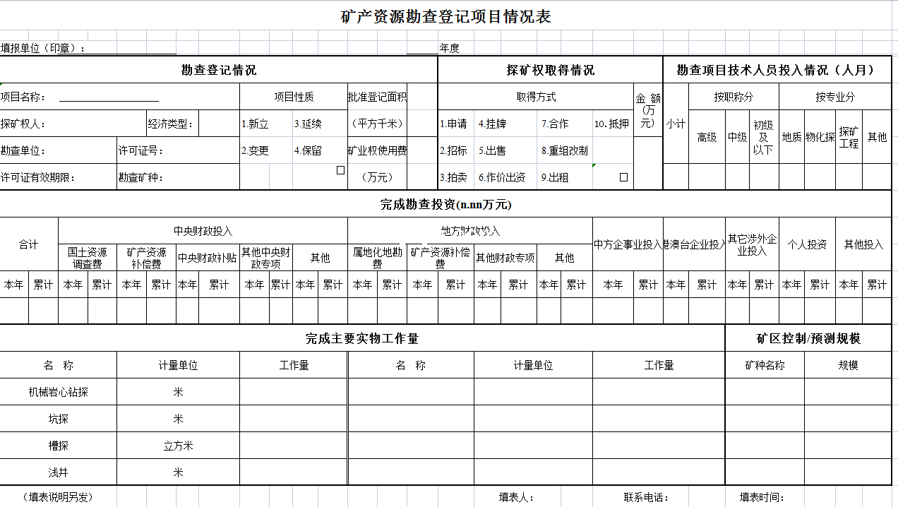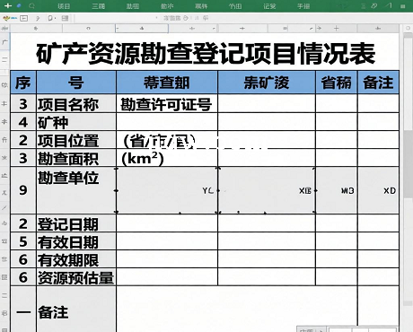 标题:矿产资源勘查登记项目情况表-Excel表格