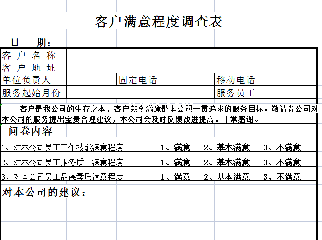 客户满意程度调查表-Excel表格