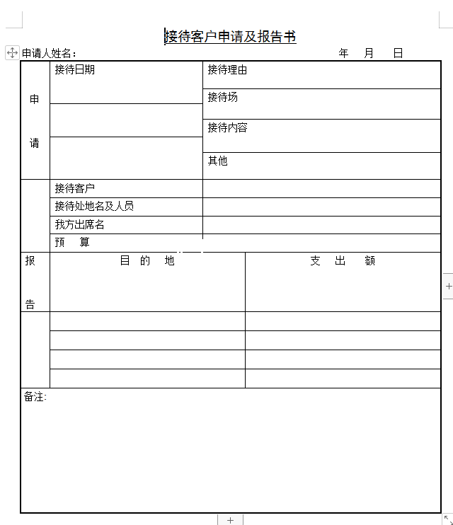 接待客户申请及报告书-Excel表格