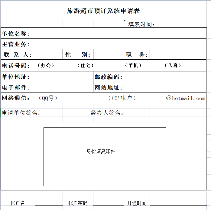 旅游超市预订系统申请表-Excel表格