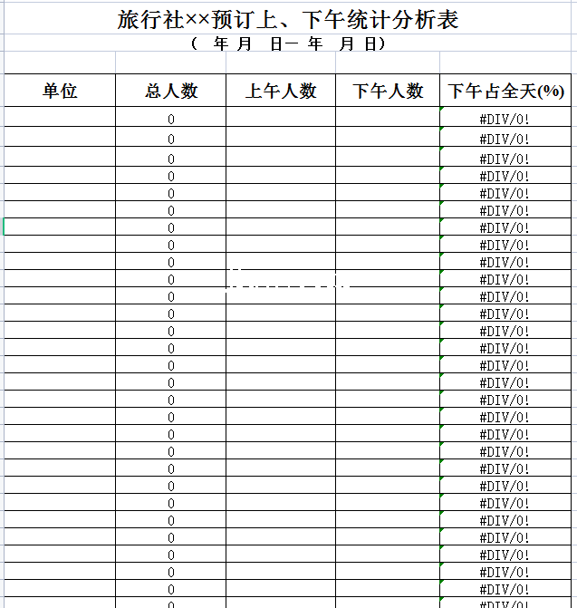 标题:旅行社预订上、下午统计分析表-Excel表格