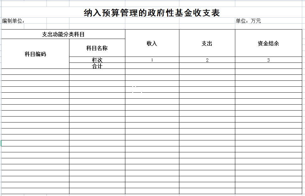标题:纳入预算管理的政府性基金收支表-Excel表格