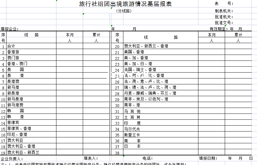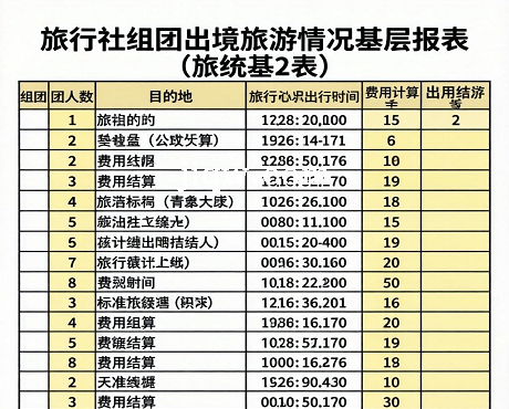 标题:旅行社组团出境旅游情况基层报表-Excel表格