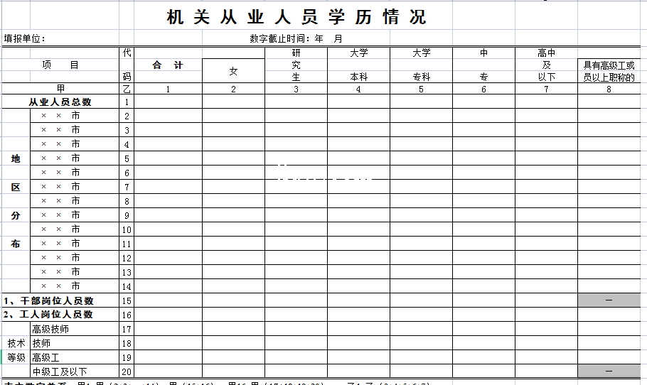 机关从业人员学历情况-Excel表格