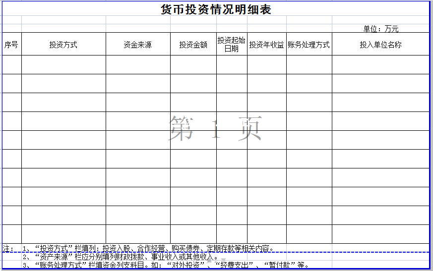 标题:货币投资情况明细表-Excel表格