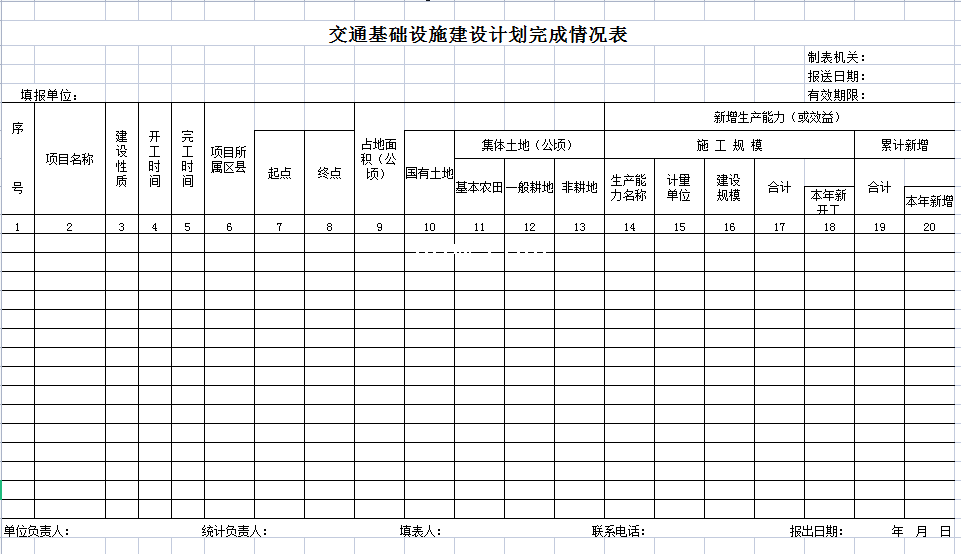标题:交通基础设施建设计划完成情况表-Excel表格