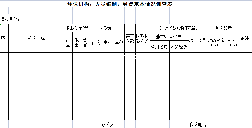 标题:环保机构、人员编制、经费基本情况调查表-Excel表格
