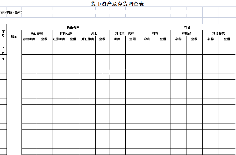 标题:货币资产及存货调查表-Excel表格