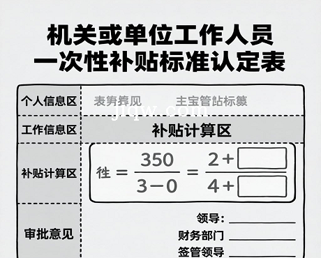 标题:机关或单位工作人员一次性补贴标准认定表-Excel表格