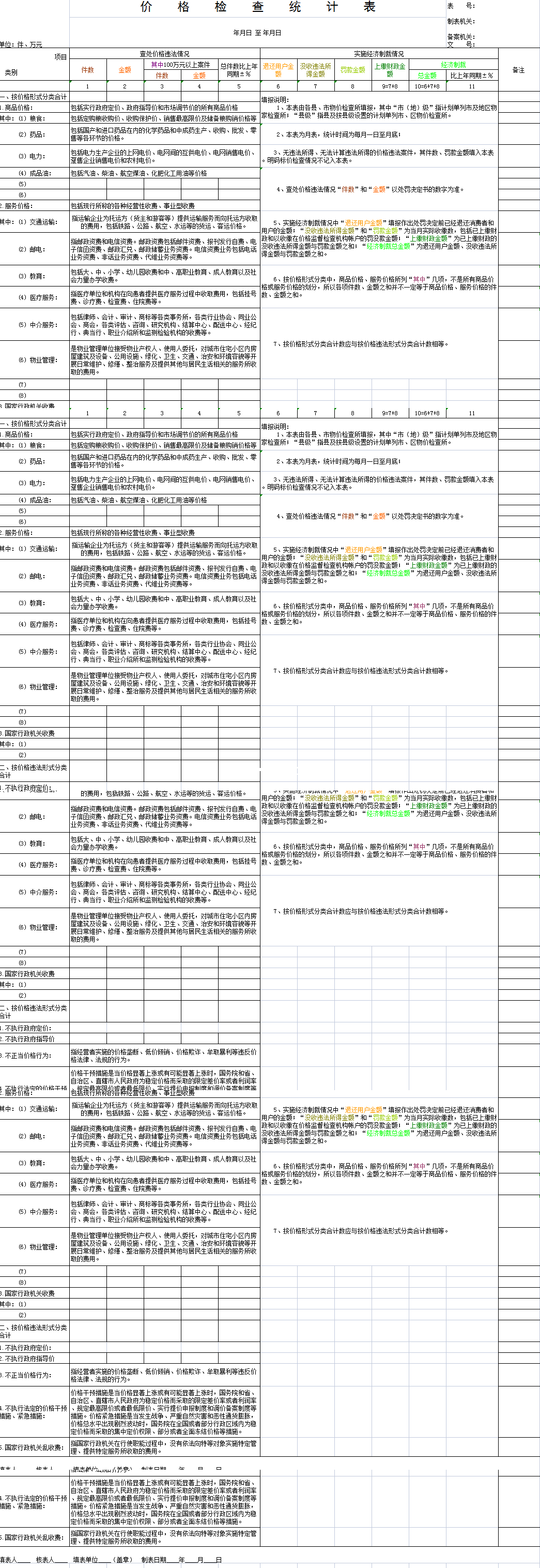 标题:价格检查统计表-Excel表格