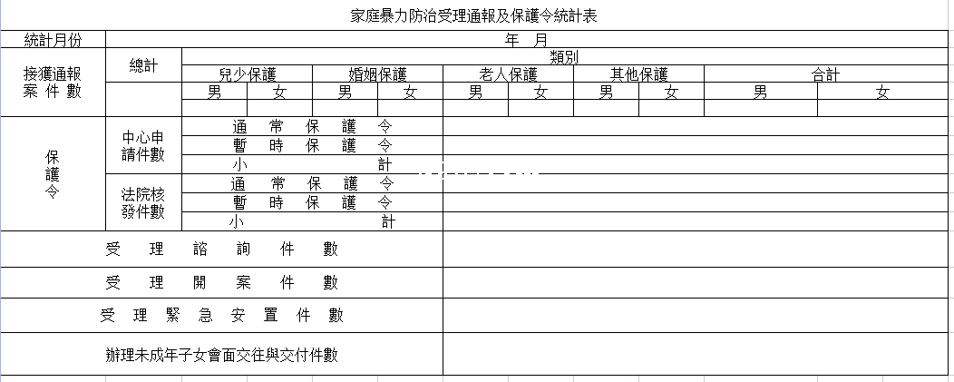 标题:家庭暴力防治受理通报及保护令统计表-Excel表格