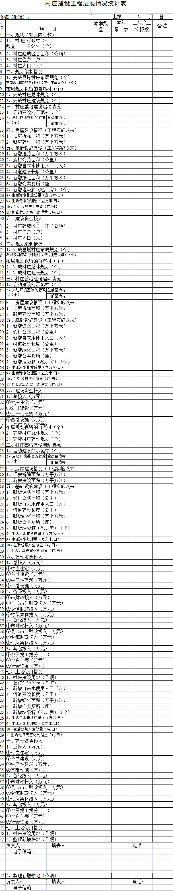 标题:村庄建设工程进展情况统计表-Excel表格