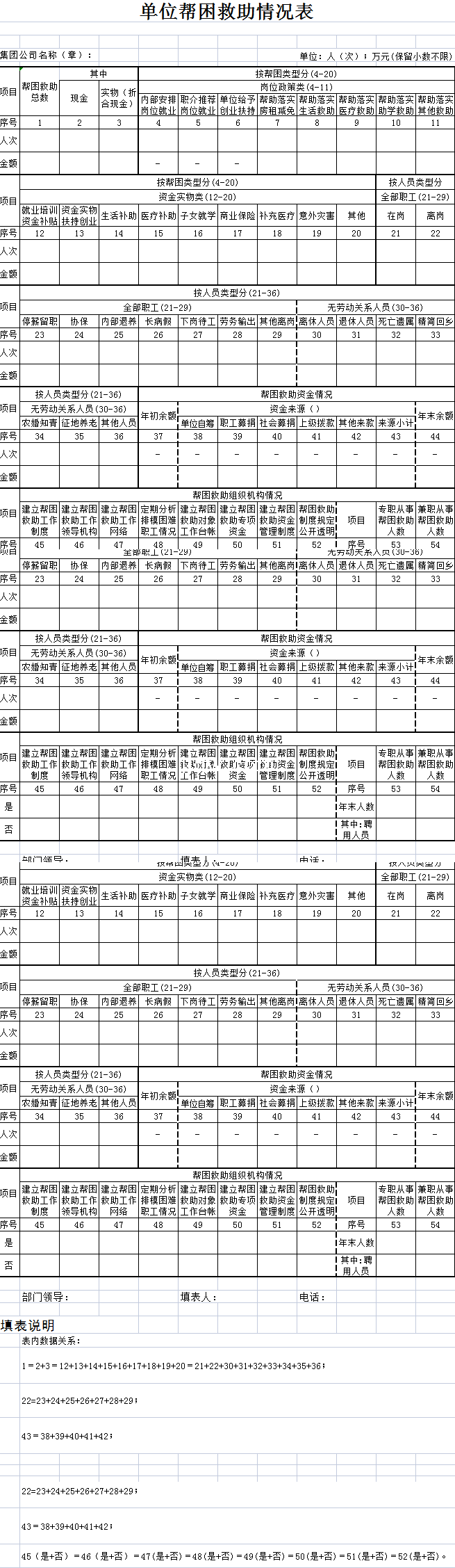 单位帮困救助情况表-Excel表格