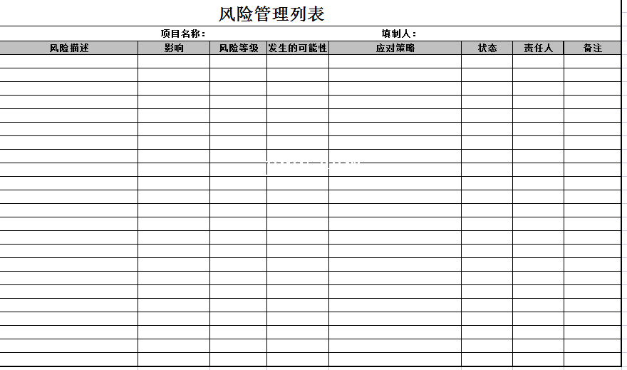 标题:风险管理列表-Excel表格