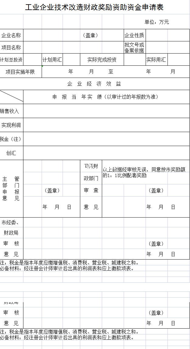 工业企业技术改造财政奖励资助资金申请表-Excel表格