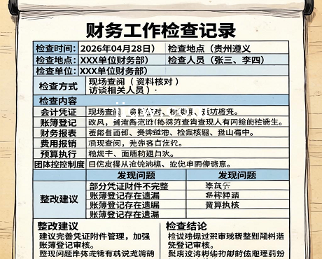 标题:单位财务工作检查记录-Excel表格