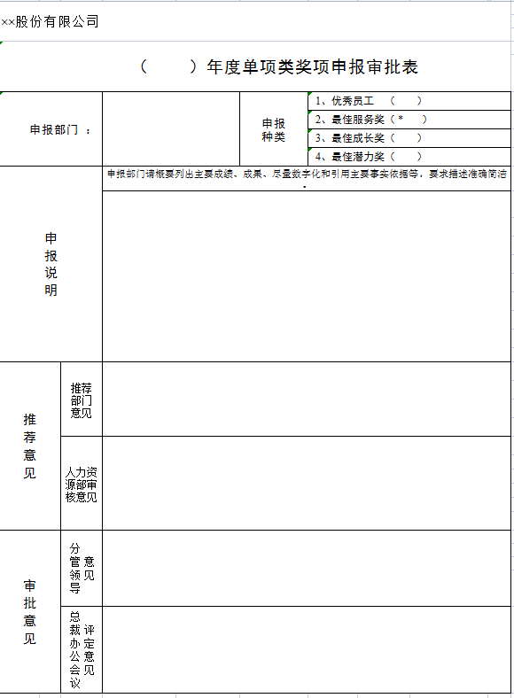 公司年度奖项申报审批表-Excel表格