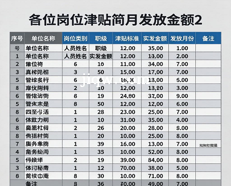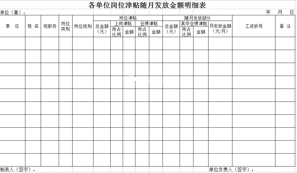 标题:各单位岗位津贴随月发放金额明细表2-Excel表格