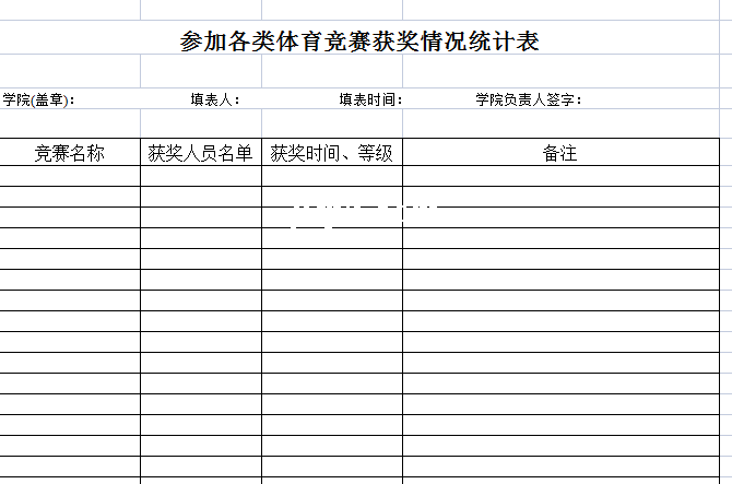 标题:各类体育竞赛获奖情况统计表-Excel表格