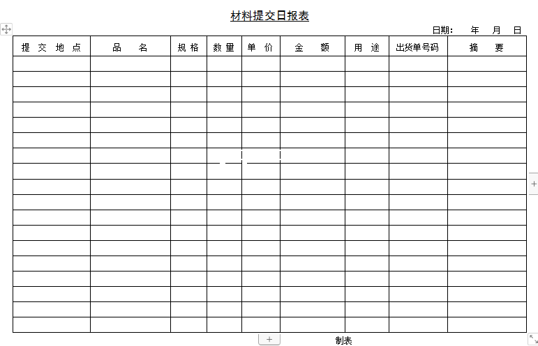 标题:材料提交日报表-Word文档
