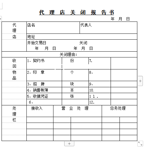 标题:代 理 店 关 闭 报 告-Word文档