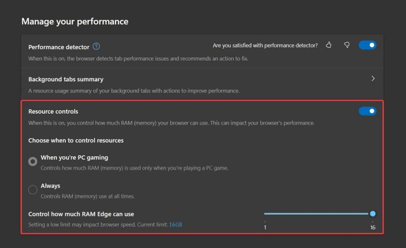 微软调整了 Edge 浏览器限制内存调用方式,将此前计划的滑块,调整为下拉菜单。