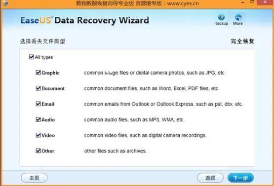 第六步:勾选需要恢复的文件格式类型,这个依照情况而定;