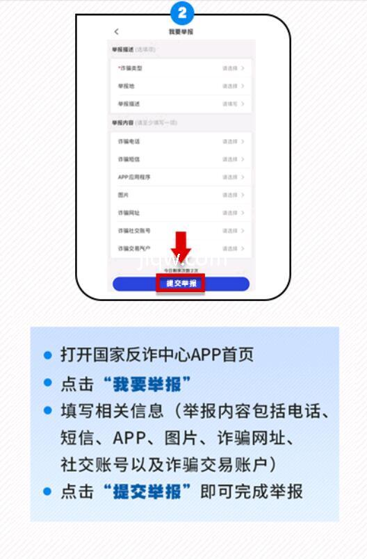 3.填写相关信息(举报内容包括电话、短信、APP、图片、诈骗网址、社交账号以及诈骗交易账户)