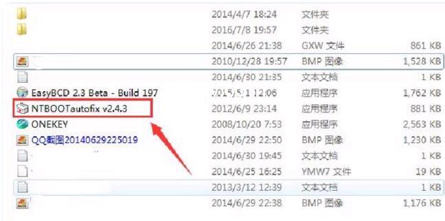 1. 用U盘启动winPE,在里面找到NTBOOTautofix v2.4.3。