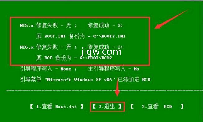 3 .等待修复完成之后,点击【2.退出】即可,至此修复双系统引导项就完成了。