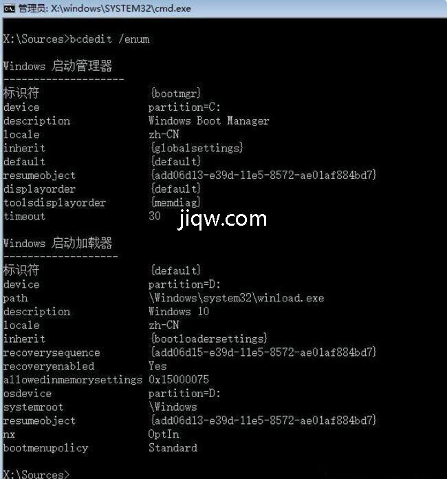 9. 修复完成之后再次使用:01bcdedit /enum ,回车执行即可解决。
