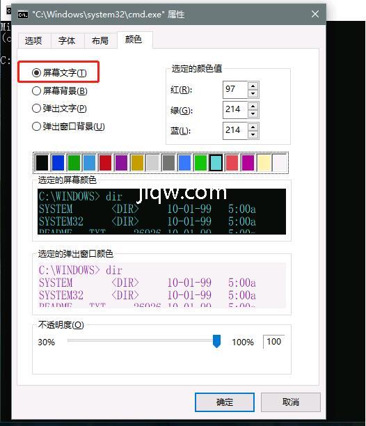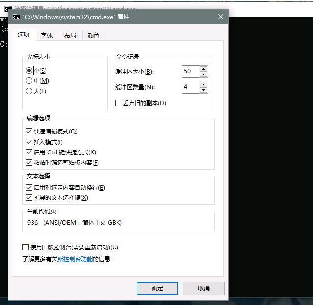 4、打开cmd属性设置窗口,在设置窗口上有多个选项栏。