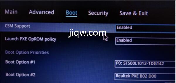 4、选择点击Boot, 将CSM Support 和 Launch PXE OpROM policy的Disabled 改成 Enabled。