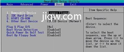 4、可以设置的包括[Removable]、[Hard Disk]、[CDROM]、[Legancy LAN]等等。按照前面的方式设置好启动顺序。