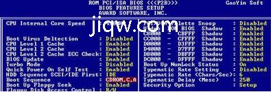 2、有一个“Boot Sequence”选项,按上、下箭头移动到这个选项后,再按键盘的“Page Down”切换已经设置好的组合,找到一种CDROM位于C之前的组合,例如“CDROM,C,A”,然后按F10,选Y,按Enter保存。