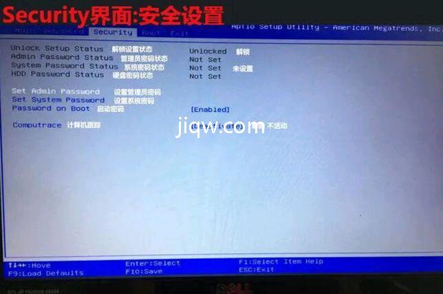 BIOS [Security界面]-安全设置该页面与安全性相关,主要用于设置相关密码,包括管理员密码,系统密码和启动密码。
