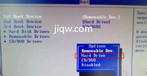 1、以联想型号为例子,启动时按Del或F1进到BIOS,切换到Boot界面,选择1st Boot Device回车,弹出Options对话框,选择Hard Drive 回车确定。