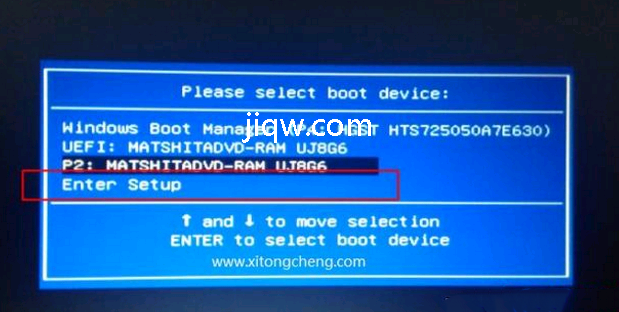 按锁屏键开机或重启,在启动全过程中,不断按ESC键。调出Please Select Boot Device,这个是启动项选择界面,能够立即选择启动项,还可以从这里进BIOS,那便是按↓方向键,移动到Enter Setup这一项,随后按Enter键就可以进到。