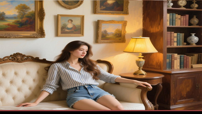 标题:美女穿性感短毛绒库超级性感